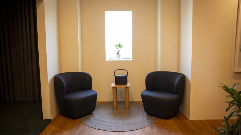 One of the standout features of the experience centre is its dedicated cinema room. Anchored by the iconic Beolab 90 speakers and a striking 100-inch display, the space offers a truly cinematic sound experience.