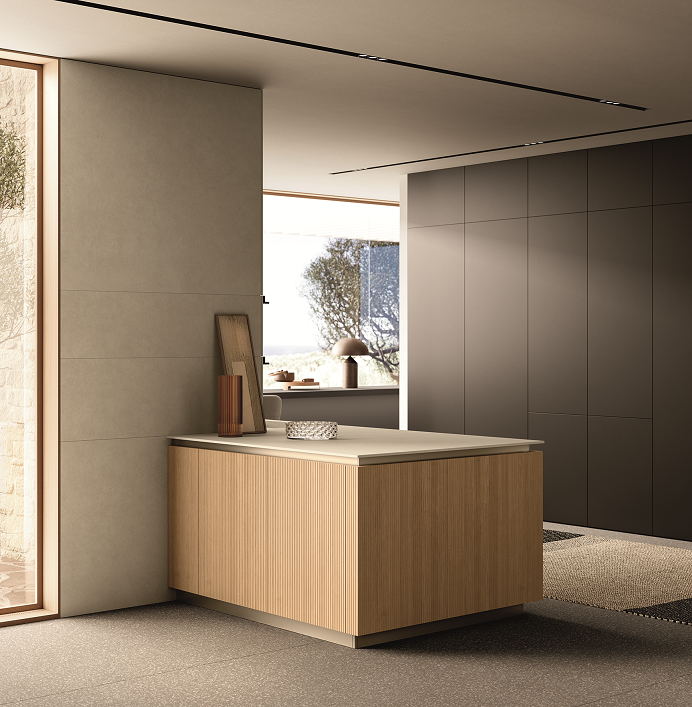Visual cohesion is achieved through continuous finishes such as matte lacquers, natural woods, and refined glass, while integrated handle systems keep lines clean and uninterrupted, allowing the space to feel calm and considered.