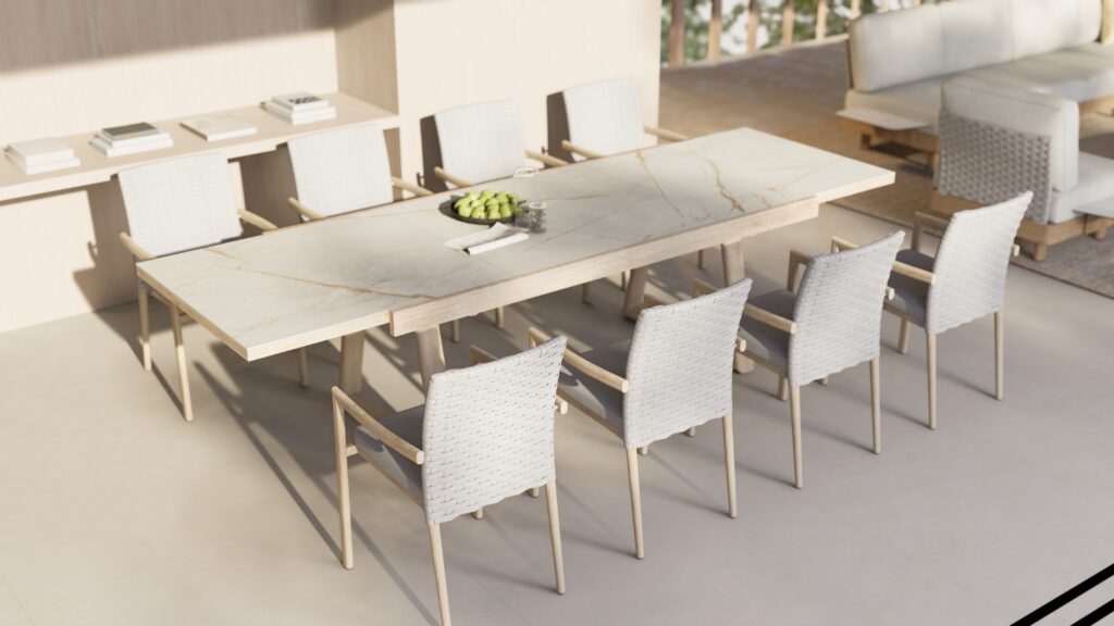 No resort experience is complete without long, unhurried meals. The Club extendable dining table brings this feeling home through a design that prioritises both style and practicality. Finished in AluOak®, Mobelli’s signature wood-look aluminium, it delivers the warmth of timber with the durability required for outdoor living.